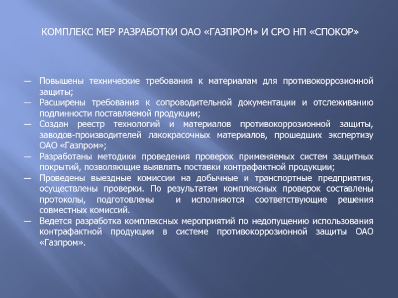 КОМПЛЕКС МЕР РАЗРАБОТКИ ОАО «ГАЗПРОМ» И СРО НП «СПОКОР»