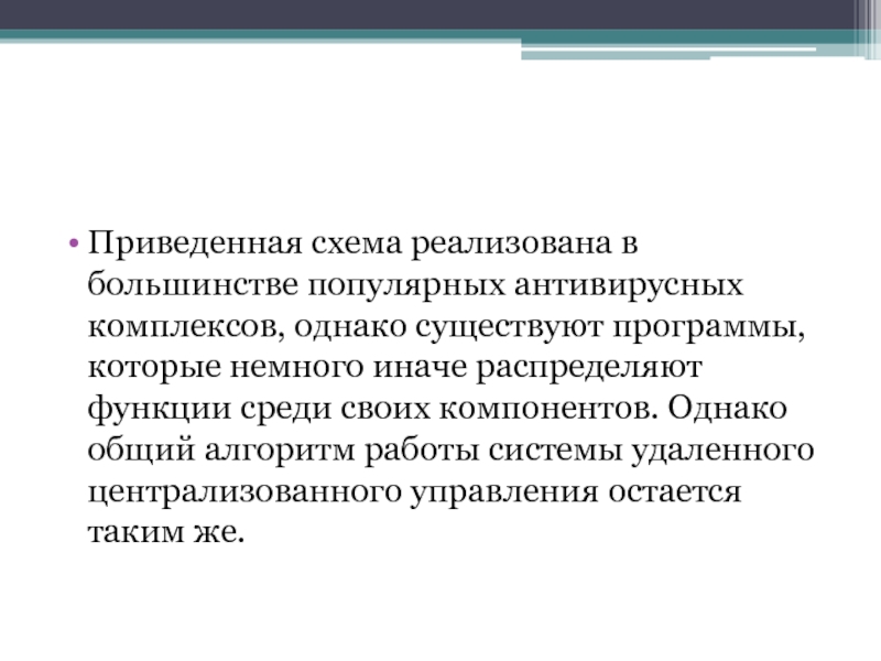 Слайд 14Приведенная схема реализована в большинстве популярных антивирусных комплексов, однако существуют программы,