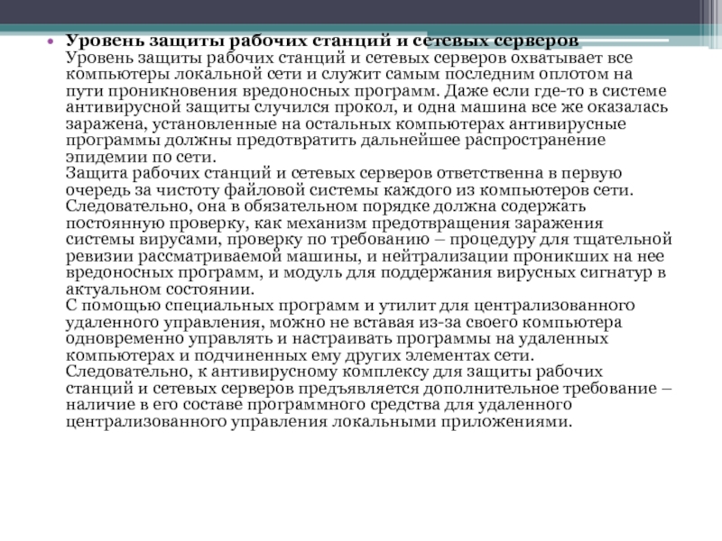 Слайд 7Уровень защиты рабочих станций и сетевых серверов