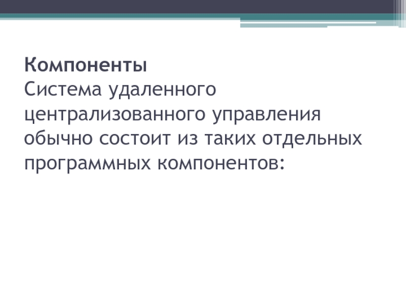 Система удаленного централизованного управления обычно состоит из таких отдельных программных компонентов: