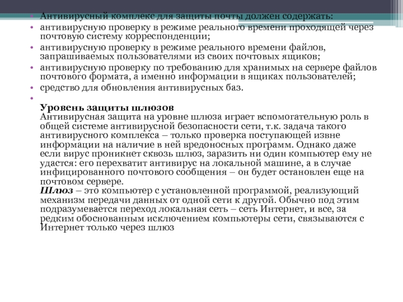 Слайд 9Антивирусный комплекс для защиты почты должен содержать: