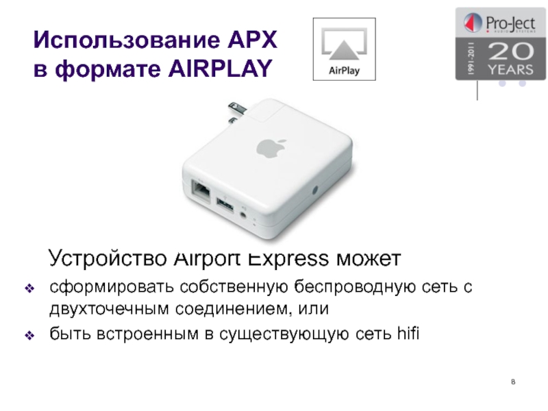 AIRPLAY обеспечивается с помощью устройства Airport Express компании Apple