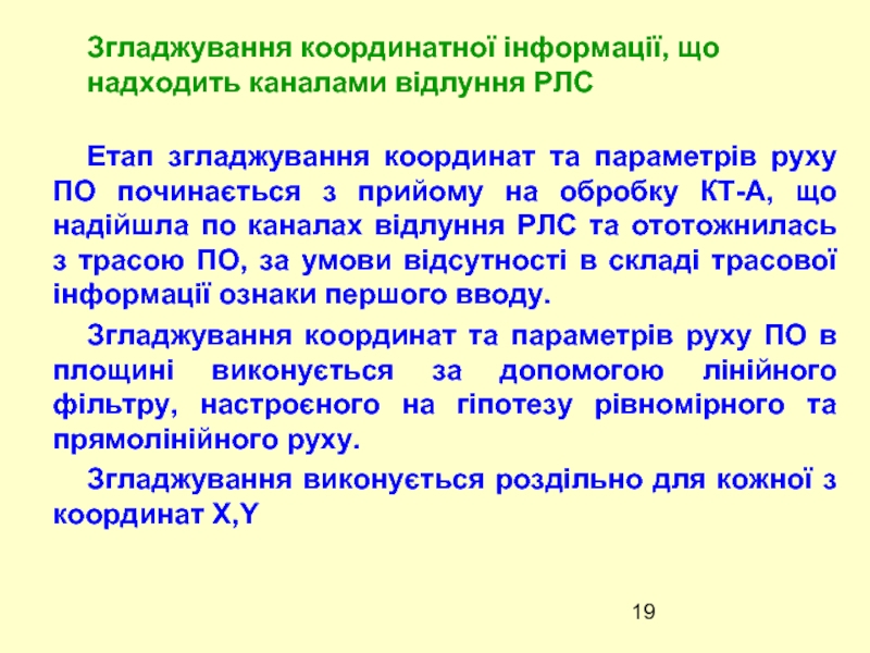 Згладжування координатної інформації, що надходить каналами відлуння РЛС