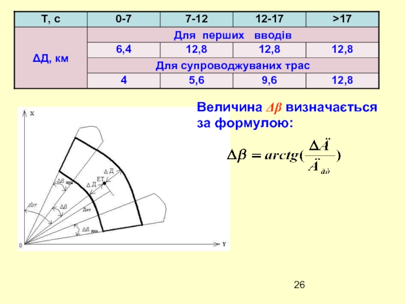 ΔД - розмір половини строба по дальності визначається проміжками часу Т між останнім оновленням траси (моментом першого вводу) та моментом майбутньої локації у відповідності з табл.3.1.