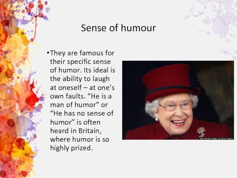 Its ideal is the ability to laugh at oneself – at one’s own faults. “He is a man of humor” or “He has no sense of humor” is often heard in Britain, where humor is so highly prized.