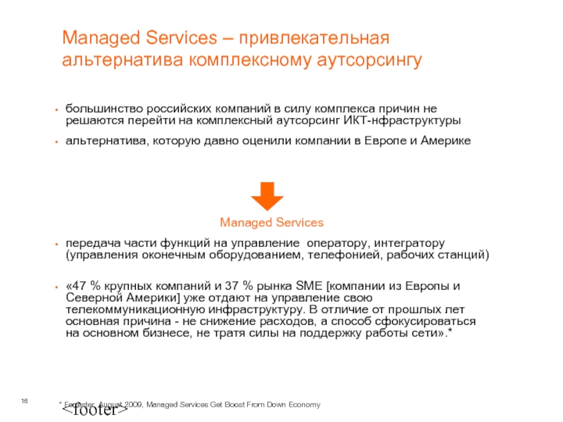* Forrester, August 2009, Managed Services Get Boost From Down Economy