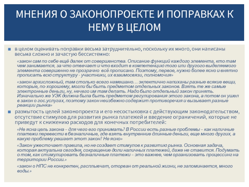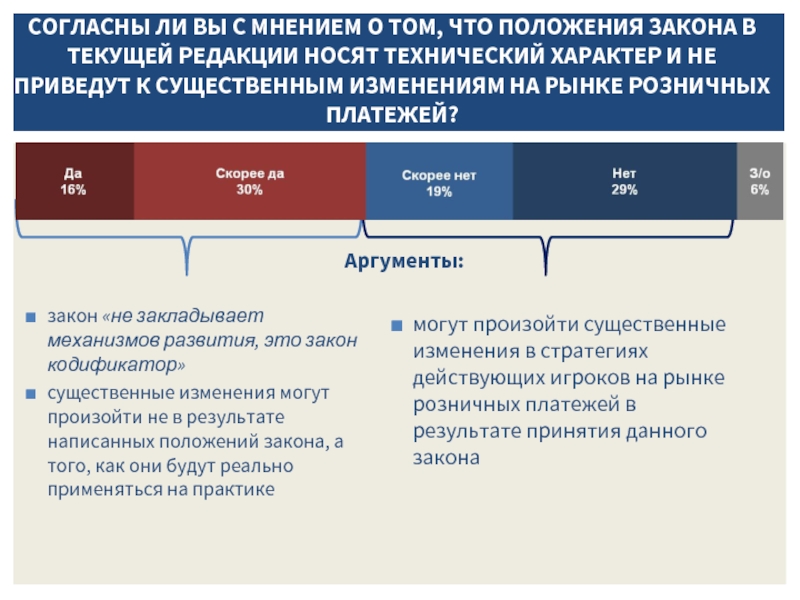 СОГЛАСНЫ ЛИ ВЫ С МНЕНИЕМ О ТОМ, ЧТО ПОЛОЖЕНИЯ ЗАКОНА В ТЕКУЩЕЙ РЕДАКЦИИ НОСЯТ ТЕХНИЧЕСКИЙ ХАРАКТЕР И НЕ ПРИВЕДУТ К СУЩЕСТВЕННЫМ ИЗМЕНЕНИЯМ НА РЫНКЕ РОЗНИЧНЫХ ПЛАТЕЖЕЙ?