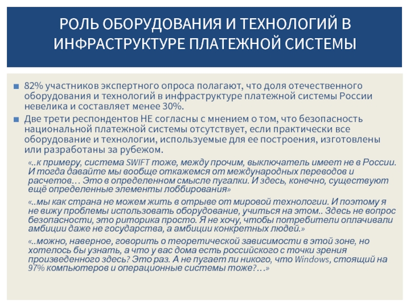 РОЛЬ ОБОРУДОВАНИЯ И ТЕХНОЛОГИЙ В ИНФРАСТРУКТУРЕ ПЛАТЕЖНОЙ СИСТЕМЫ