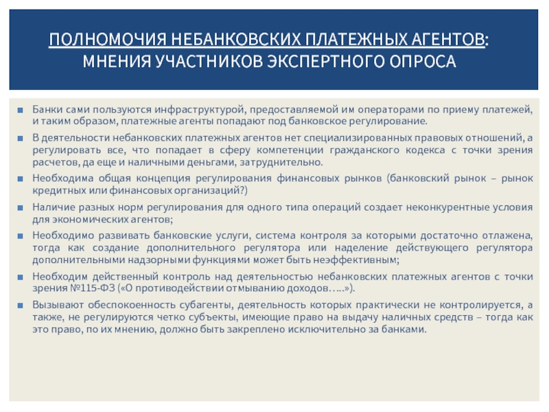 ПОЛНОМОЧИЯ НЕБАНКОВСКИХ ПЛАТЕЖНЫХ АГЕНТОВ: МНЕНИЯ УЧАСТНИКОВ ЭКСПЕРТНОГО ОПРОСА