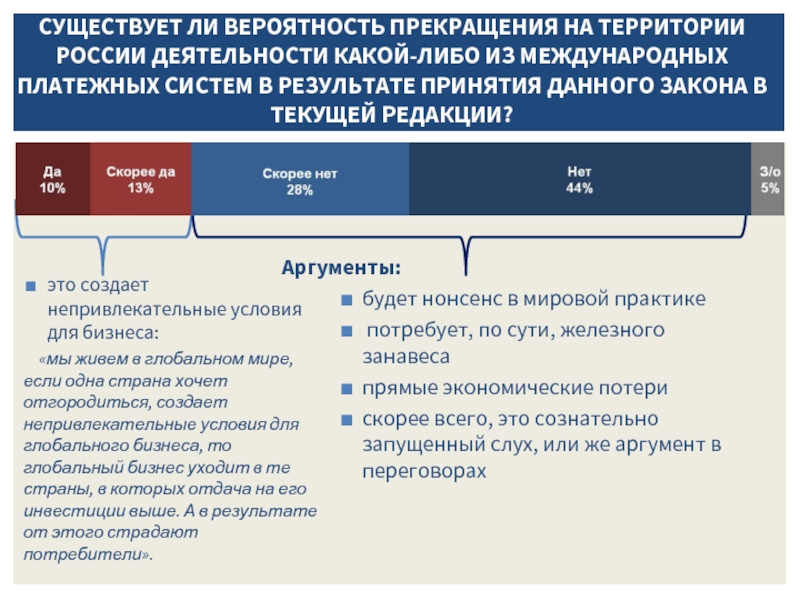 СУЩЕСТВУЕТ ЛИ ВЕРОЯТНОСТЬ ПРЕКРАЩЕНИЯ НА ТЕРРИТОРИИ РОССИИ ДЕЯТЕЛЬНОСТИ КАКОЙ-ЛИБО ИЗ МЕЖДУНАРОДНЫХ ПЛАТЕЖНЫХ СИСТЕМ В РЕЗУЛЬТАТЕ ПРИНЯТИЯ ДАННОГО ЗАКОНА В ТЕКУЩЕЙ РЕДАКЦИИ?