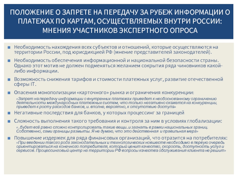ПОЛОЖЕНИЕ О ЗАПРЕТЕ НА ПЕРЕДАЧУ ЗА РУБЕЖ ИНФОРМАЦИИ О ПЛАТЕЖАХ ПО КАРТАМ, ОСУЩЕСТВЛЯЕМЫХ ВНУТРИ РОССИИ: