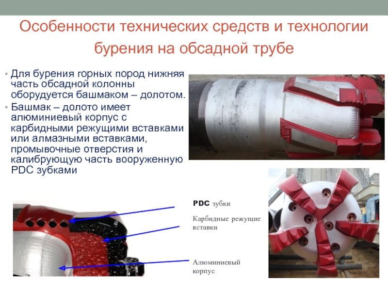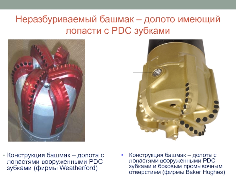 Конструкция башмак – долота с лопастями вооруженными PDC зубками и боковым промывочным отверстием (фирмы Baker Hughes)