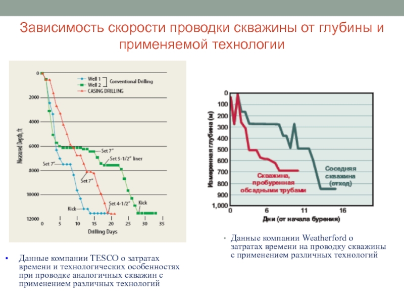 Данные компании TESCO о затратах времени и технологических особенностях при проводке аналогичных скважин с применением различных технологий