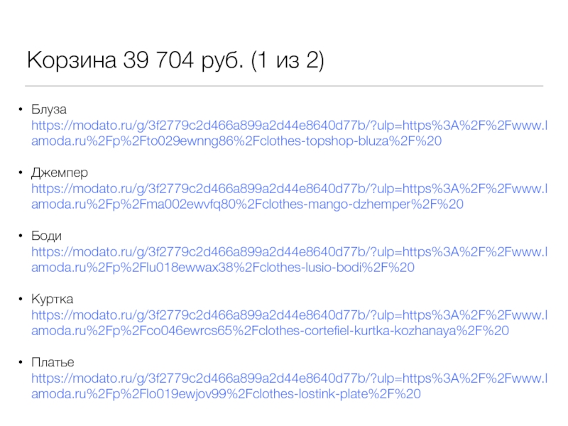 Слайд 15Корзина 39 704 руб.(2 из 2)
