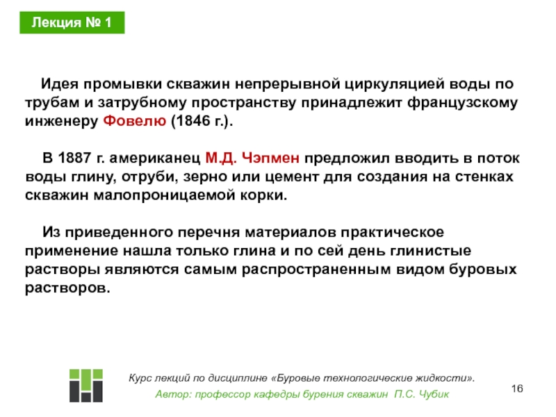 Курс лекций по дисциплине «Буровые технологические жидкости».