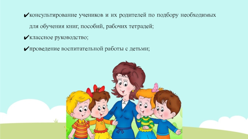 Слайд 13консультирование учеников и их родителей по подбору необходимых для обучения книг,