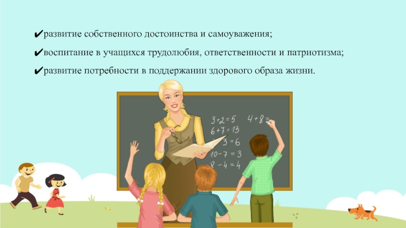 формирование у учащихся моральных принципов, а также такого рода качеств, как уважение, терпимость, доброта;