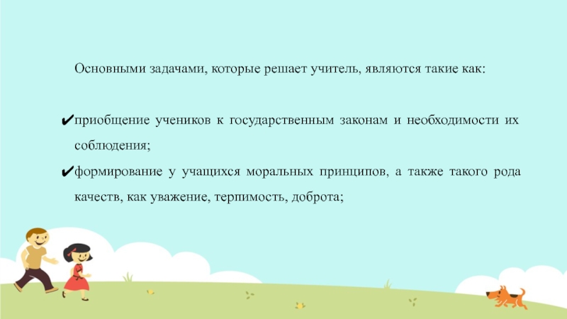 Слайд 10Основными задачами, которые решает учитель, являются такие как: