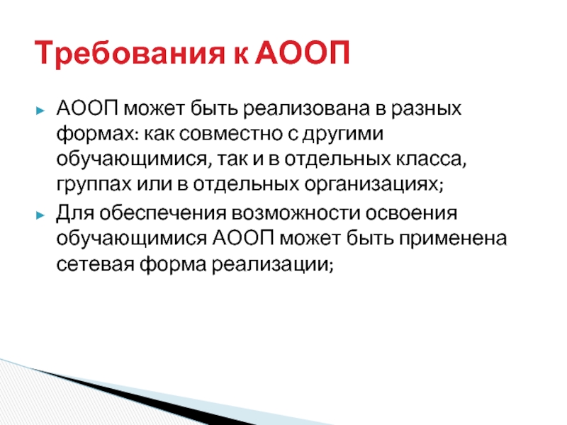 Слайд 2Это совокупность обязательных требований при реализации АООП