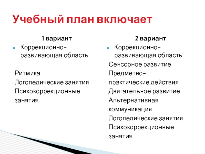 Обязательным элементом учебного плана является «Коррекционно-развивающая область», реализующаяся через содержание коррекционных курсов.