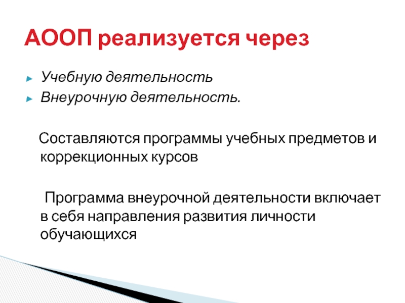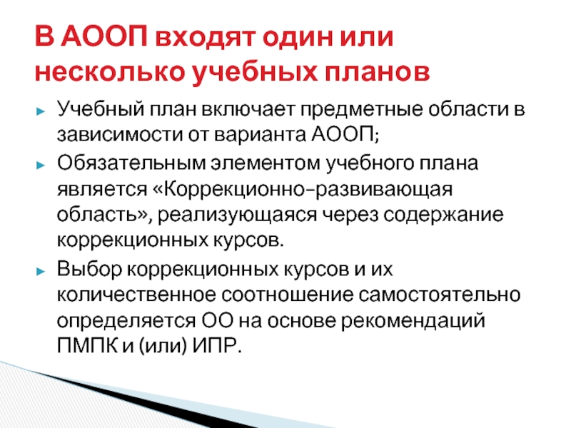 АООП реализуется на основе специально разработанных учебных планов, в т.ч. индивидуальных;