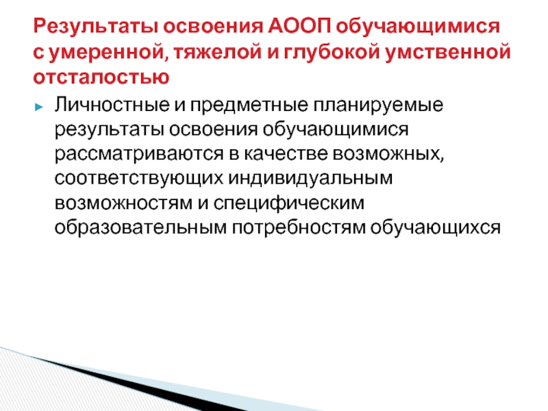 Особые образовательные потребности для обучающихся с умеренной, глубокой и тяжелой умственной отсталостью