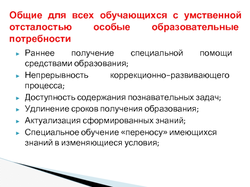 Общие для всех обучающихся с умственной отсталостью особые образовательные потребности