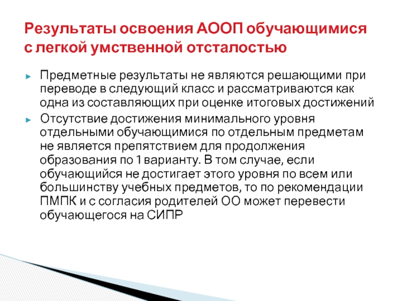 образования обучающимися с умственной отсталостью на основе комплексной оценки личностных и предметных результатов освоения АООП, заключения ПМПК и согласия родителей (законных представителей)