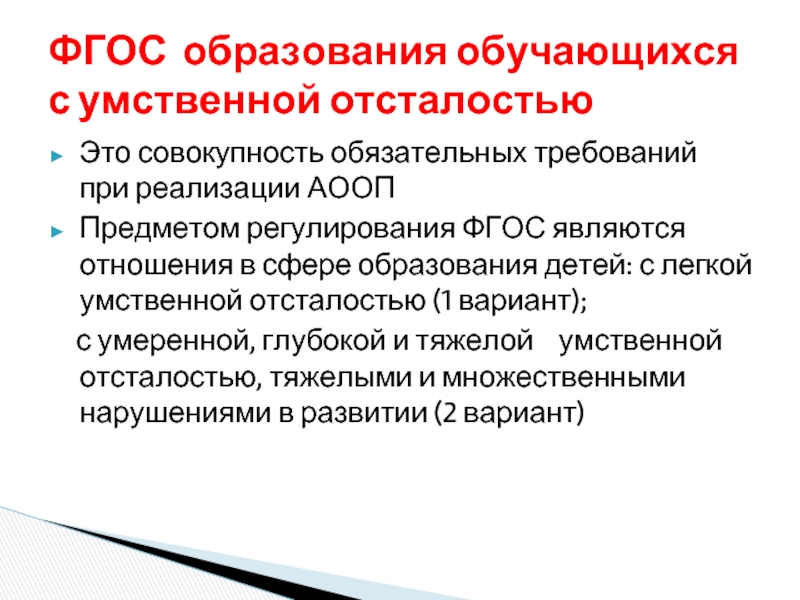 ФГОС обучающихся с ОВЗ для детей с задержкой психического развития и умственно отсталых детей