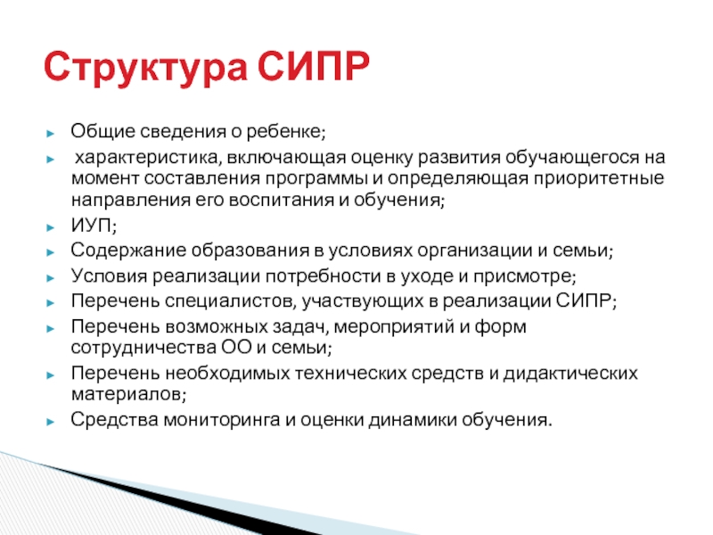 Для обучающихся с умеренной, тяжелой и глубокой умственной отсталостью, с тяжелыми и множественными нарушениями развития на основе Стандарта разрабатывается специальная индивидуальная программа развития (СИПР), учитывающая специфические образовательные потребности детей;