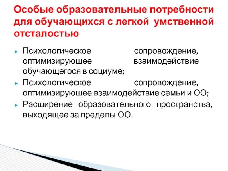 Слайд 7Психологическое сопровождение, оптимизирующее взаимодействие обучающегося в социуме;
