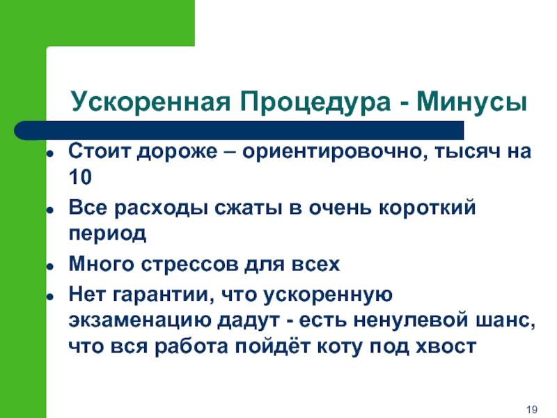 Слайд 20Ускоренная Процедура - Минусы