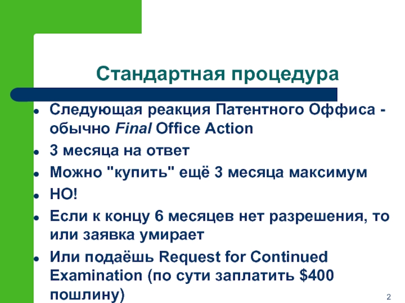 Следующая реакция Патентного Оффиса - обычно Final Office Action