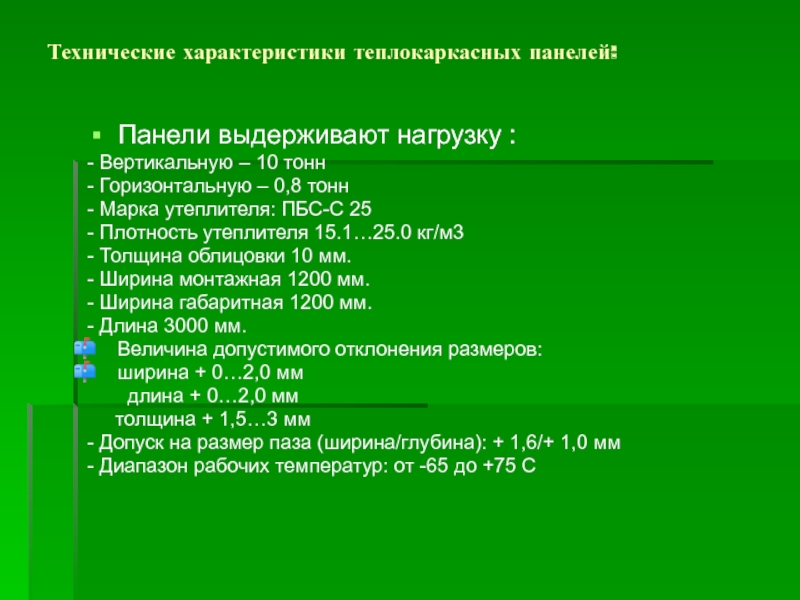 Слайд 4Технические характеристики теплокаркасных панелей: