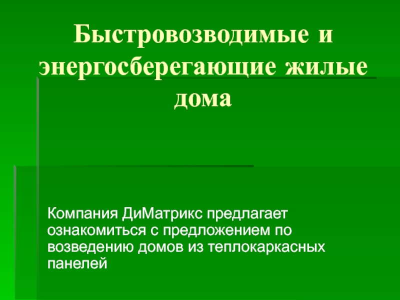 Слайд 1Быстровозводимые и энергосберегающие жилые дома