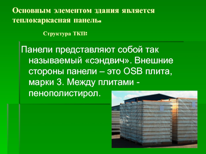 Слайд 3Основным элементом здания является теплокаркасная панель.