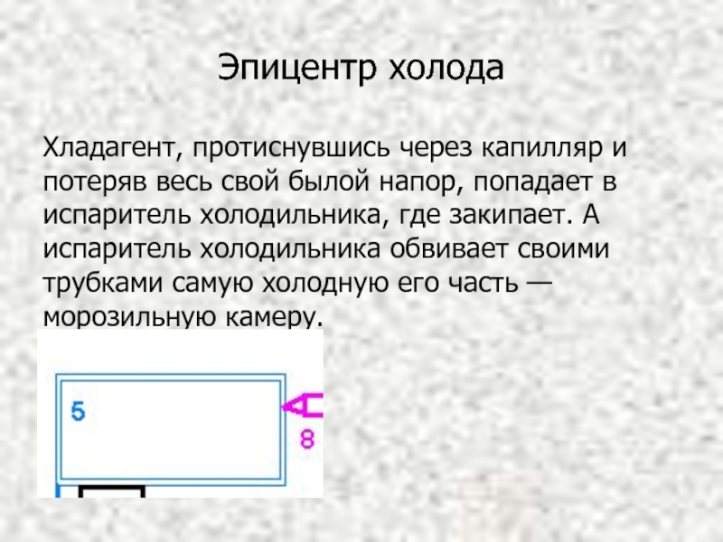 Хладагент, протиснувшись через капилляр и потеряв весь свой былой напор,