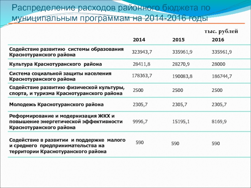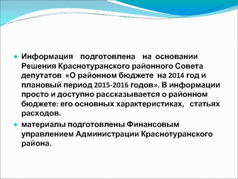 Бюджетом муниципального образования Краснотуранский район на 2014 год и плановый период 2015-2016г.г. предоставление бюджетных кредитов не планируется.