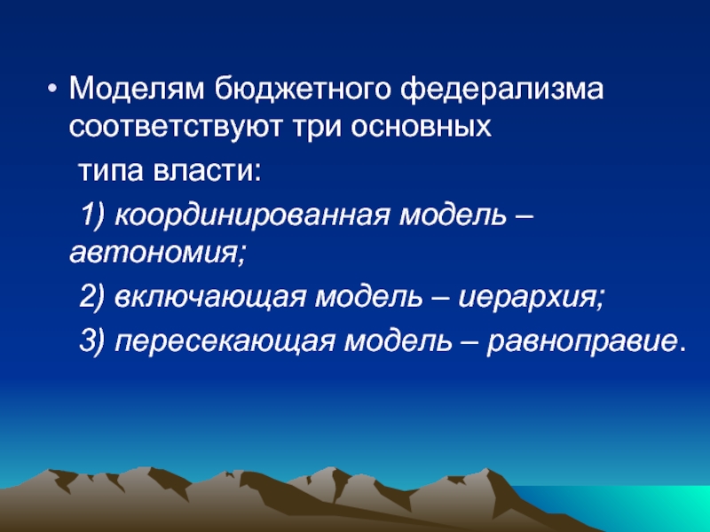 Слайд 12Моделям бюджетного федерализма соответствуют три основных