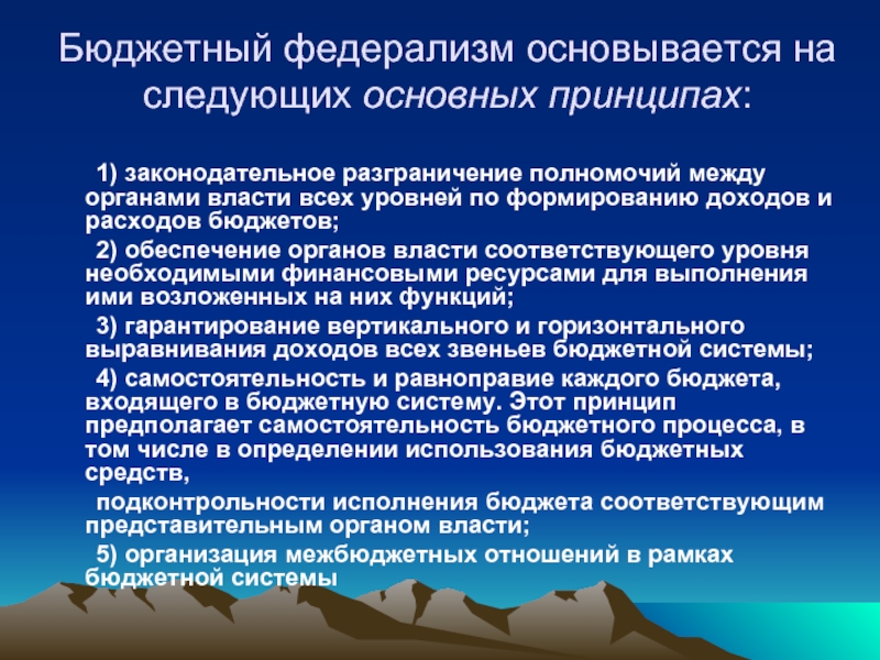 Слайд 17Бюджетный федерализм основывается на следующих основных принципах: