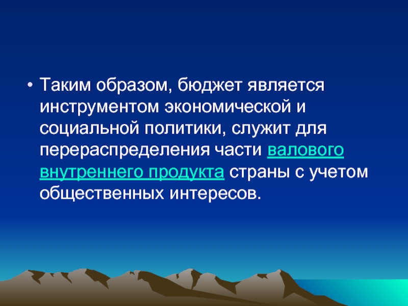 Слайд 4Таким образом, бюджет является инструментом экономической и социальной политики, служит для