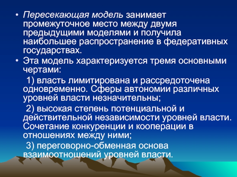 Слайд 16Пересекающая модель занимает промежуточное место между двумя предыдущими моделями и получила