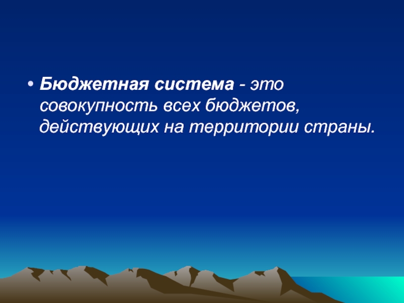 Слайд 7Бюджетная система - это совокупность всех бюджетов, действующих на территории страны.