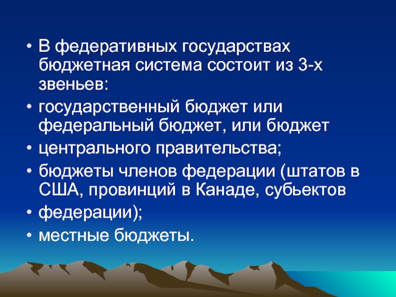 Слайд 8В федеративных государствах бюджетная система состоит из 3-х звеньев: