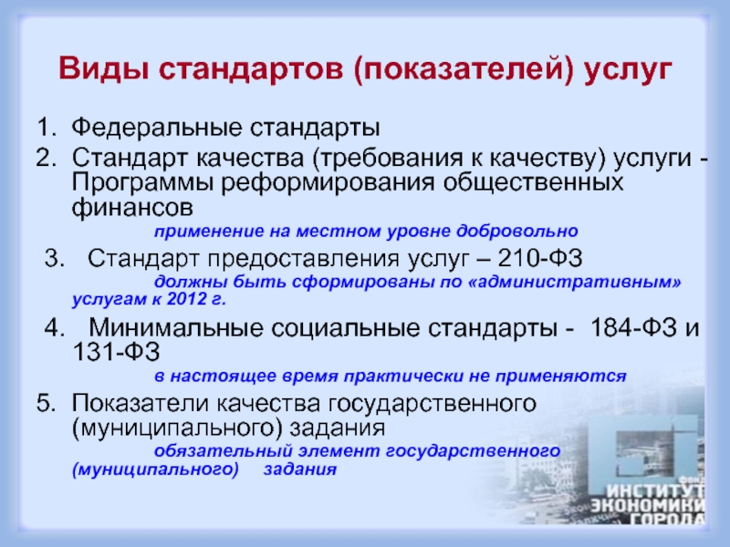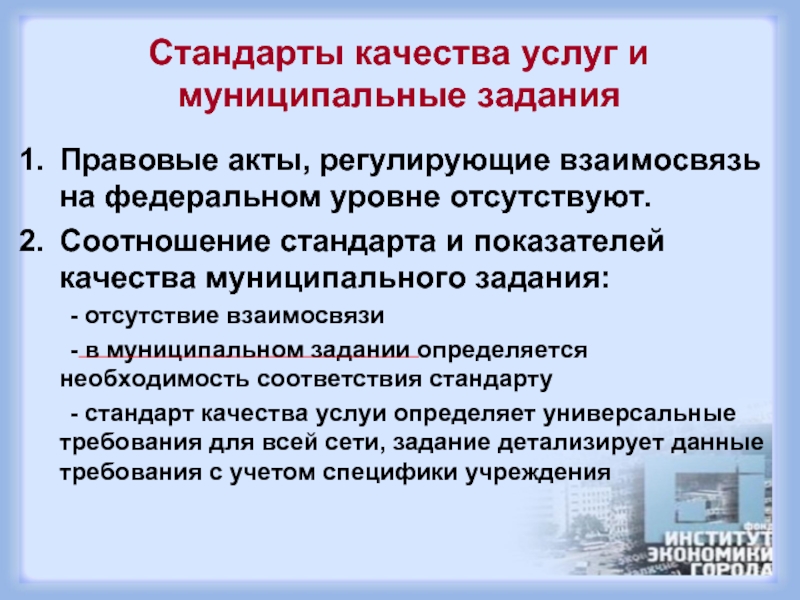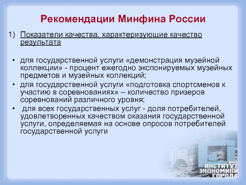 Официальные методические рекомендации, определяющие принципы выделения государственных (муниципальных) услуг (работ), до настоящего времени не разработаны