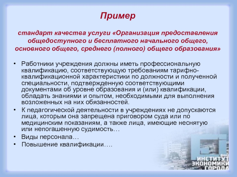 Работники учреждения должны иметь профессиональную квалификацию, соответствующую требованиям тарифно-квалификационной характеристики по должности и полученной специальности, подтвержденную соответствующими документами об уровне образования и (или) квалификации, обладать знаниями и опытом, необходимыми для выполнения возложенных на них обязанностей.