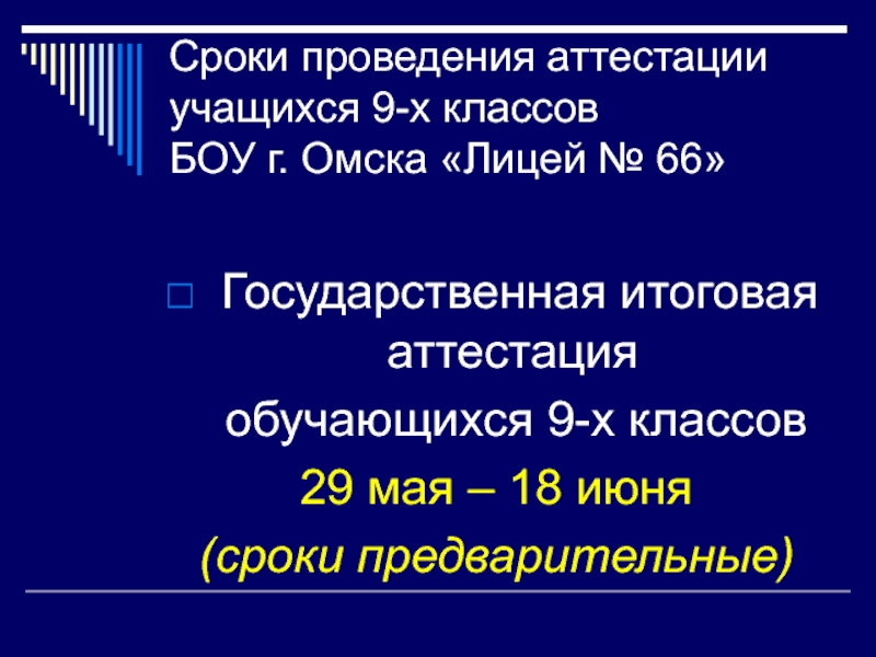 Слайд 3Сроки проведения аттестации учащихся 9-х классов