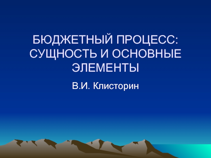 Слайд 1БЮДЖЕТНЫЙ ПРОЦЕСС: СУЩНОСТЬ И ОСНОВНЫЕ ЭЛЕМЕНТЫ