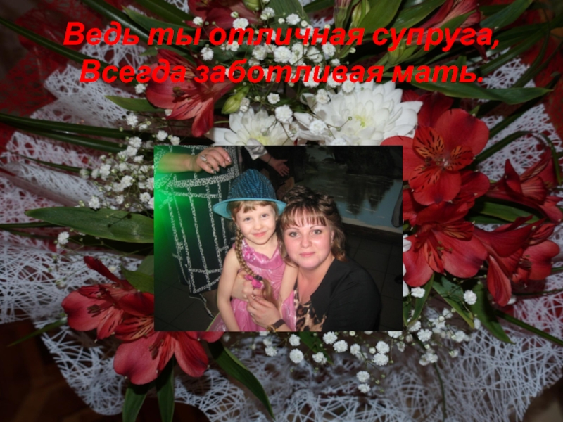 Слайд 3Ведь ты отличная супруга, Всегда заботливая мать.