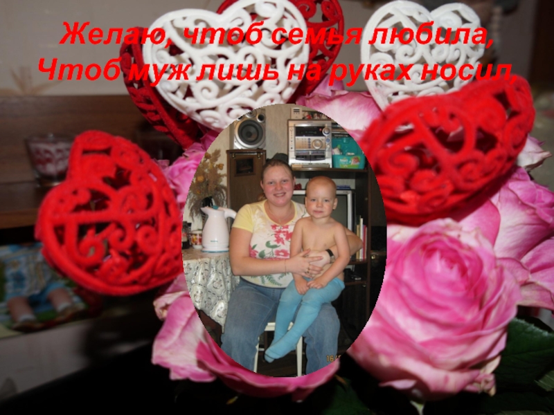 Слайд 4Желаю, чтоб семья любила, Чтоб муж лишь на руках носил,